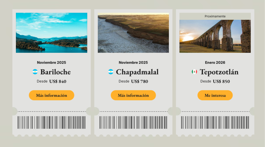 También estructuramos el sitio para que el equipo pueda actualizar viajes y contenidos con autonomía, dejando componentes reutilizables y preparados para escalar nuevas ediciones sin rehacer la base.